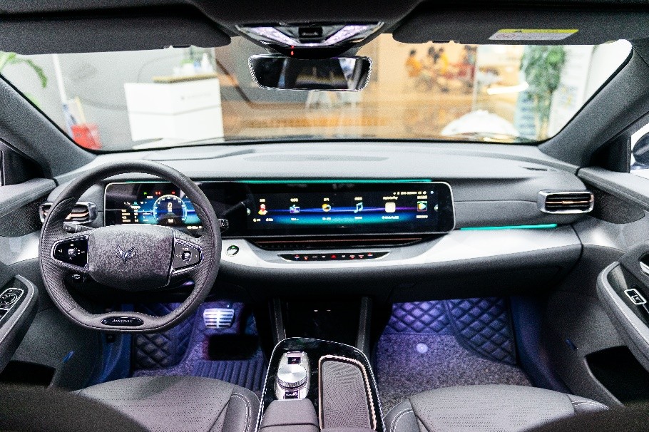 阿尔法S搭载了12.3英寸全液晶仪表,以及20.3英寸的“巨大”中控屏,并支持4K高清显示,屏幕表面还做了防眩光、防反射的处理,即便在强光下也拥有出色的显示效果,屏幕的整体感受处于行业的第一梯队。