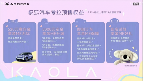 值得一提的是,这次上市发布会现场,考拉还将向首批用户交付新车,真正做到现货上市即交付。第一批接过极狐汽车考拉钥匙的人会是谁,是否有潮爸星妈?很值得期待。